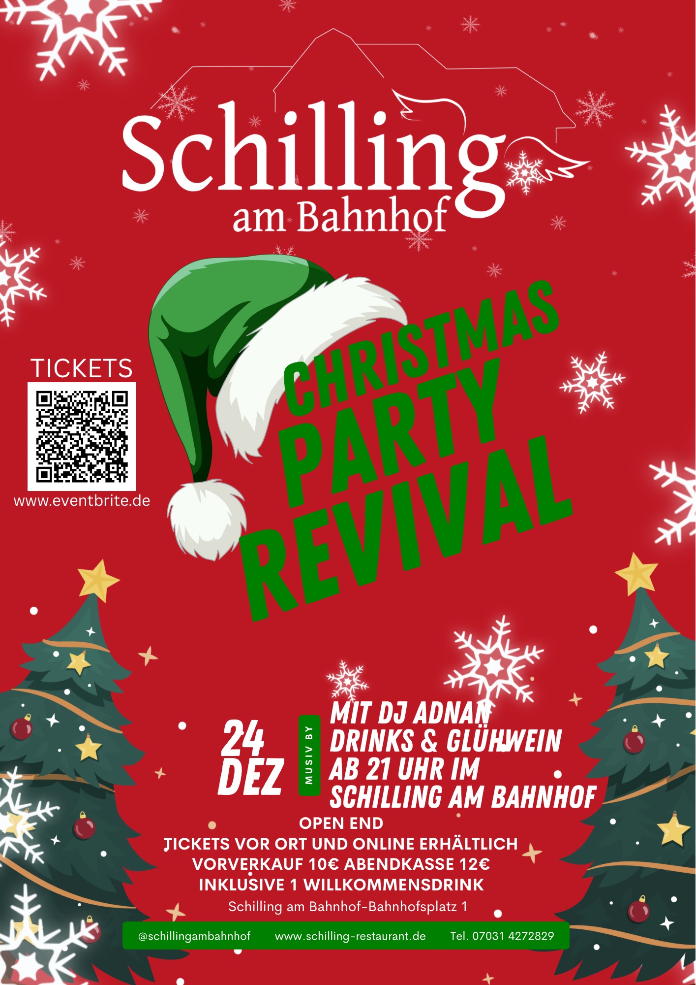 Mit der Christmas Party im Schilling am Bahnhof könnt Ihr Weihnachten dieses Jahr mit uns besonders feiern. Mit Drinks und Live DJ Adnan, ab 21 Uhr im Schilling am Bahnhof.